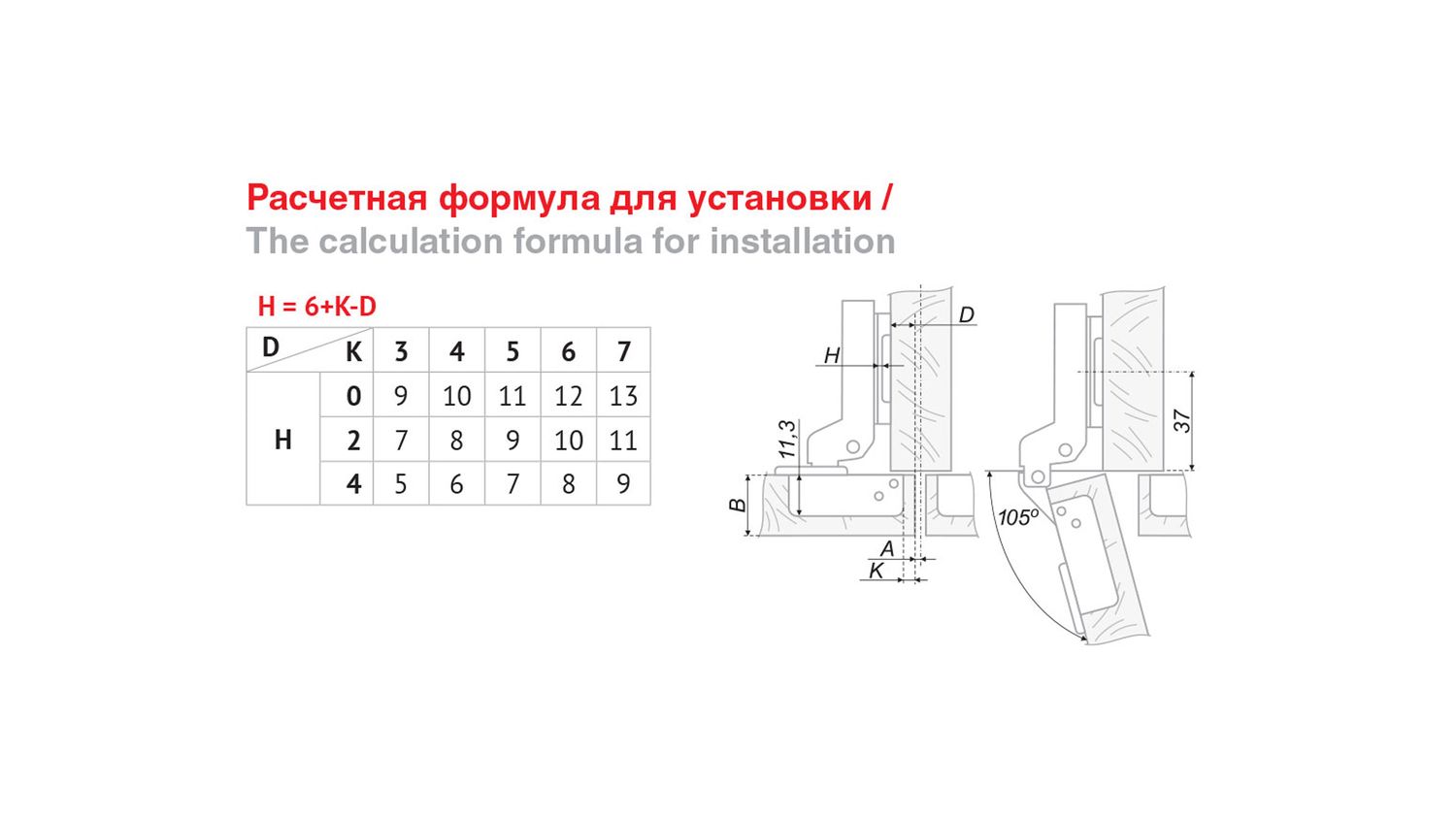 Способ монтажа петли: | Под евровинт и саморез, с d отверстий 5,5 мм |
