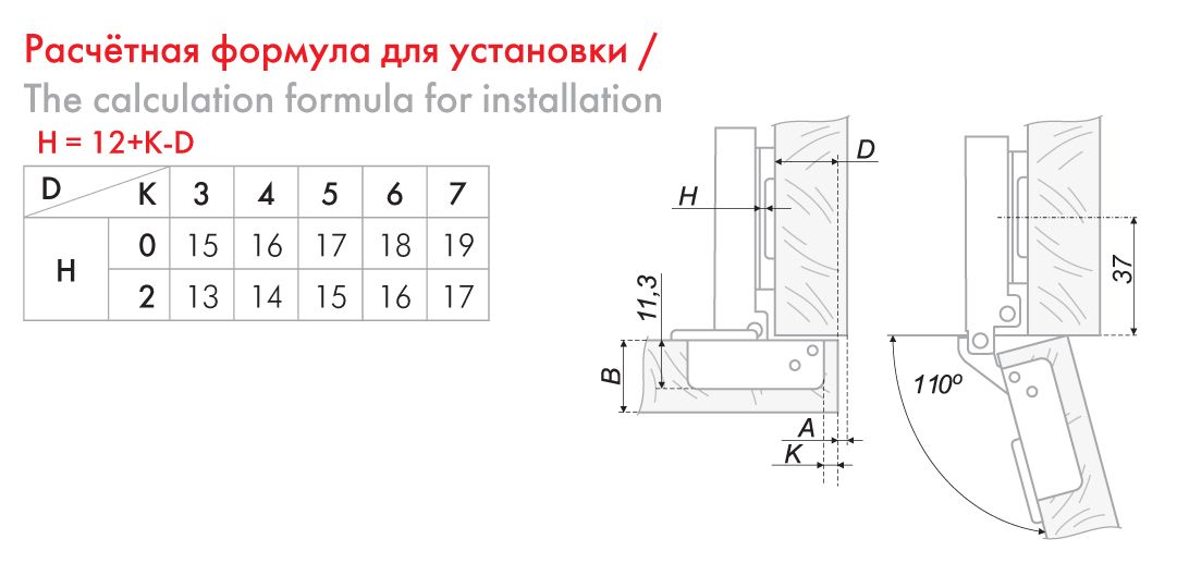 H302 – это четырехшарнирная цельнометаллическая вкладная петля системы Clip-on с амортизатором и уголом открывания 110°.