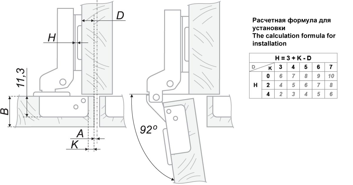 Способ монтажа петли:Под евровинт и саморез, с d отверстий 5,5 мм