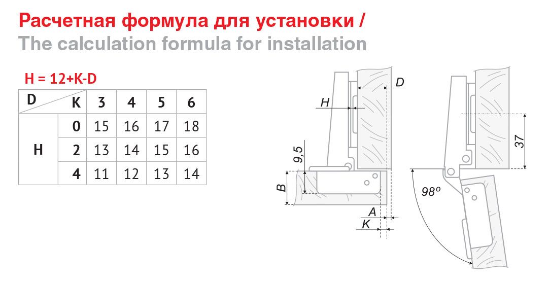 Способ монтажа петли:Под евровинт и саморез, с d отверстий 5,5 мм