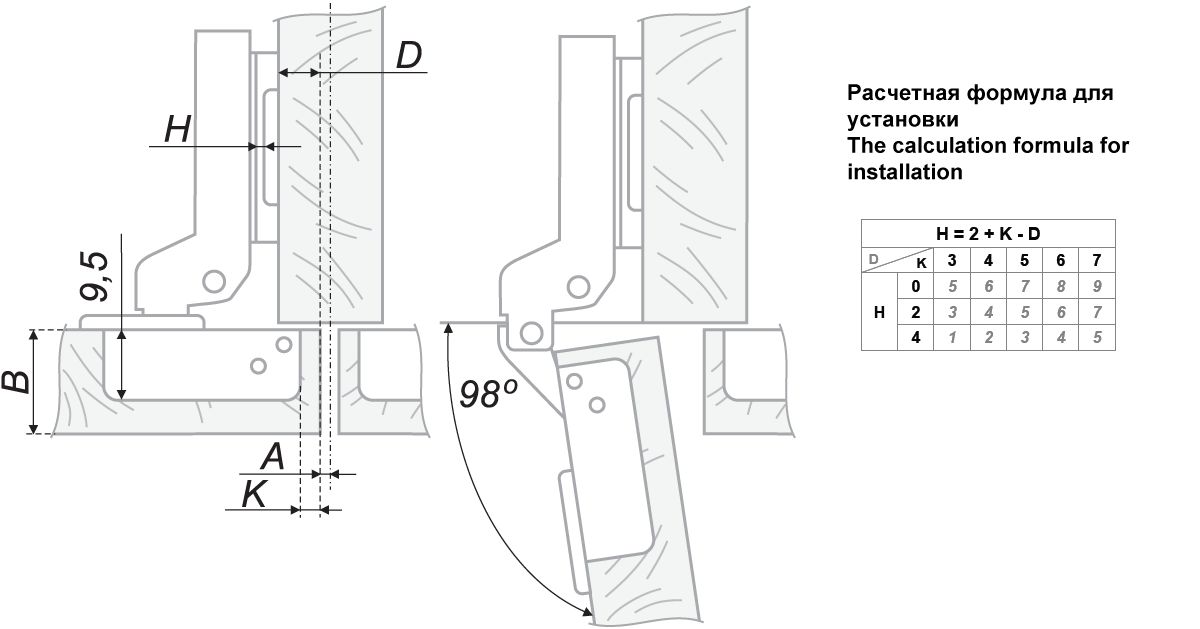 Угол открывания:98°