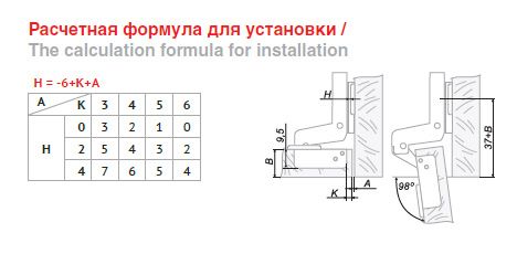 Способ монтажа петли:Под евровинт и саморез, с d отверстий 5,5 мм