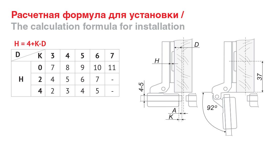 Способ монтажа петли:Под евровинт и саморез, с d отверстий 5,5 мм