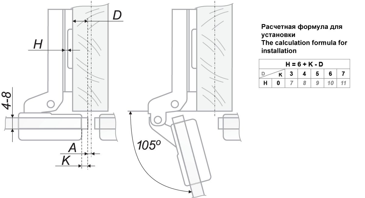 Способ монтажа петли: | Под евровинт и саморез, с d отверстий 5,5 мм |