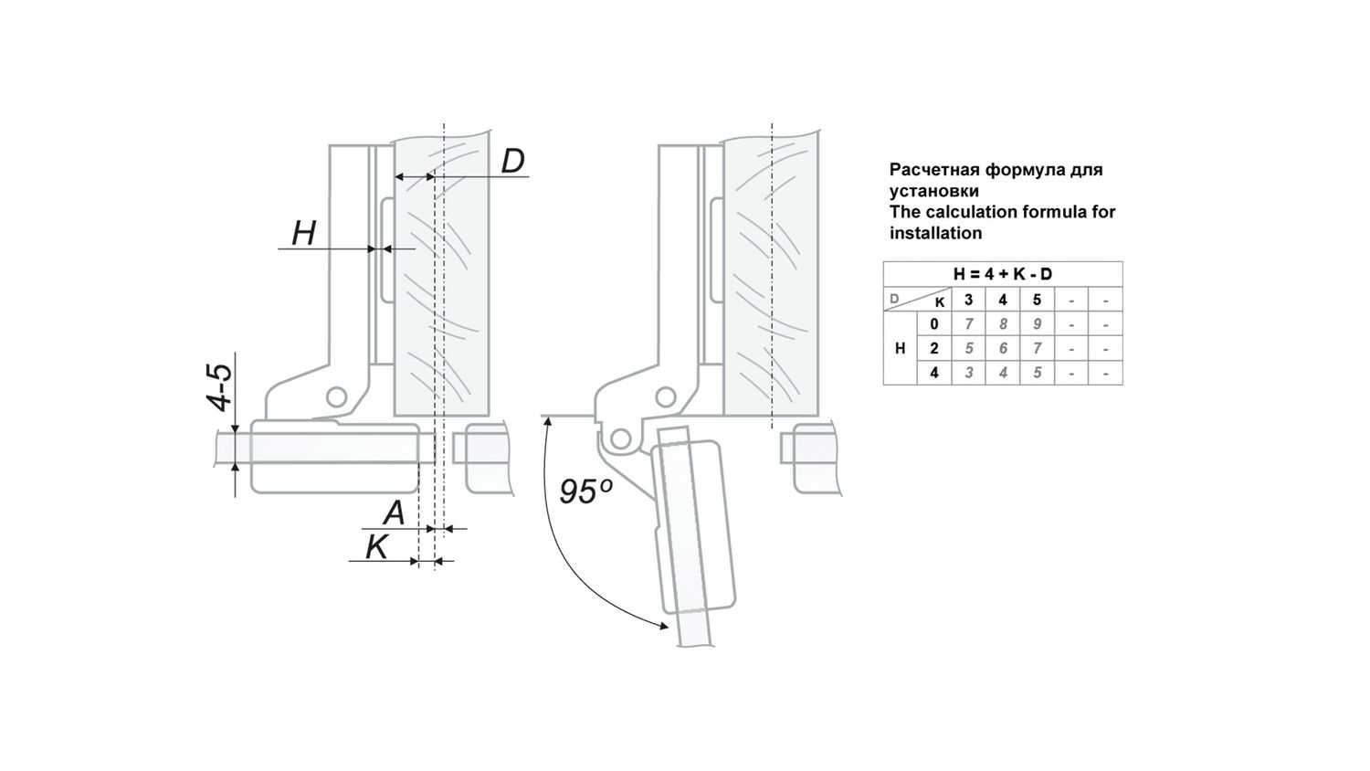 Способ монтажа петли:Под евровинт и саморез, с d отверстий 5,5 мм