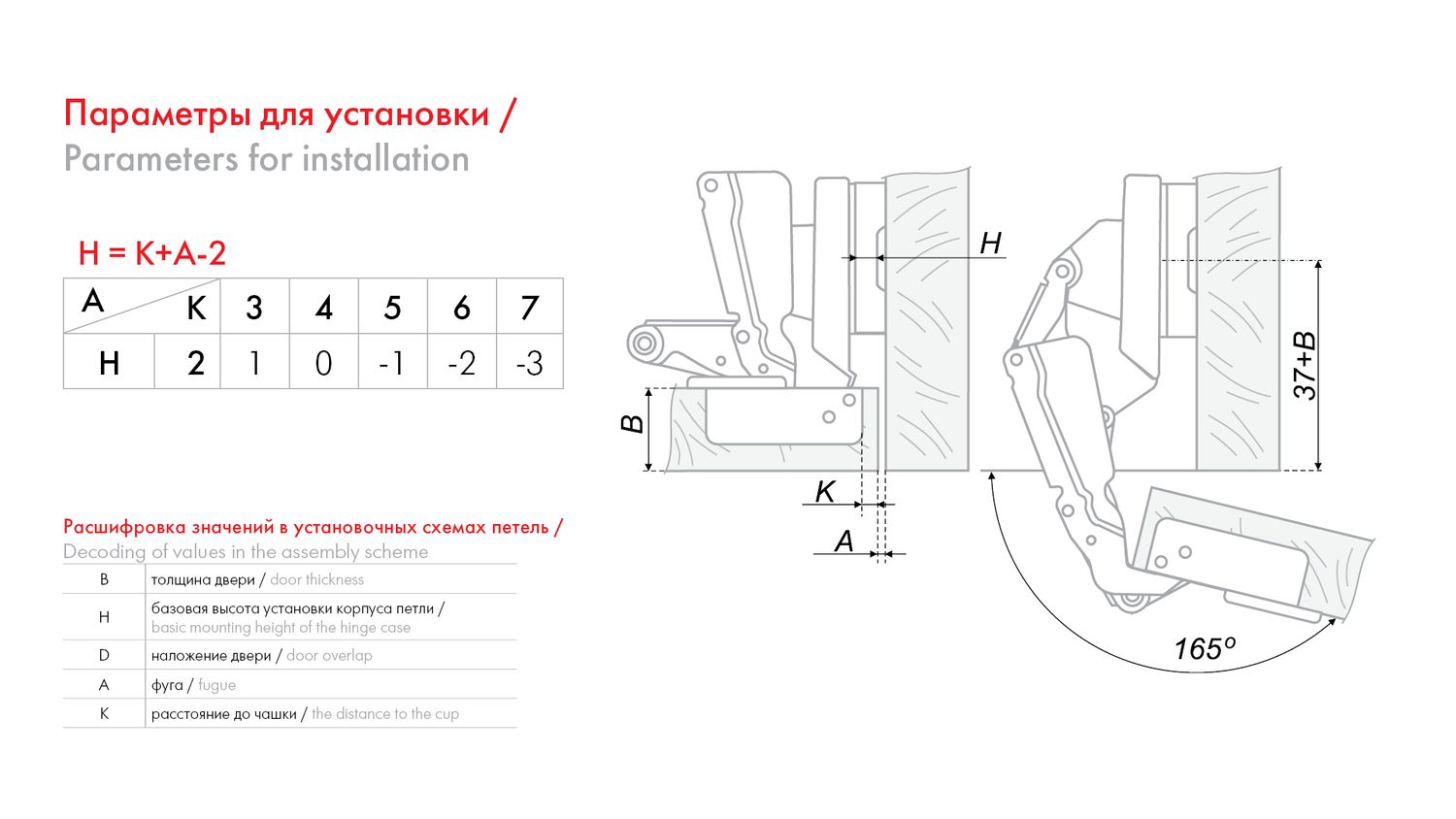 Угол открывания:165°