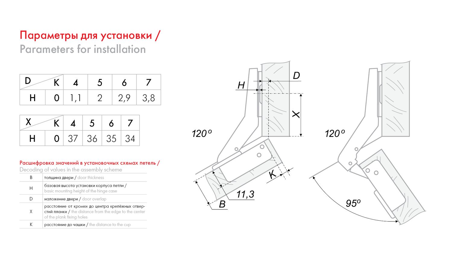 Угол открывания: | 95° |