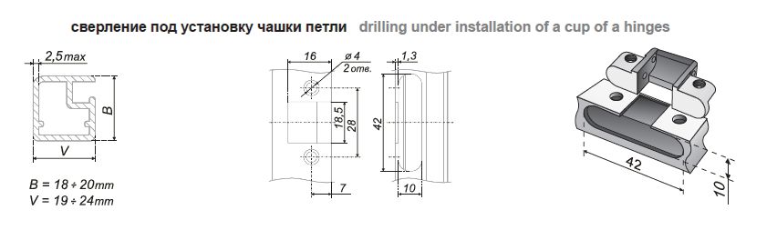 Способ монтажа петли:Под евровинт и саморез, с d отверстий 5,5 мм