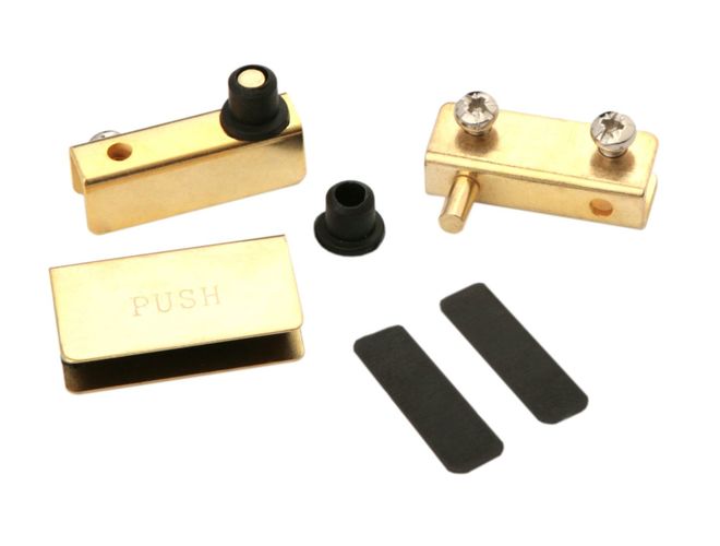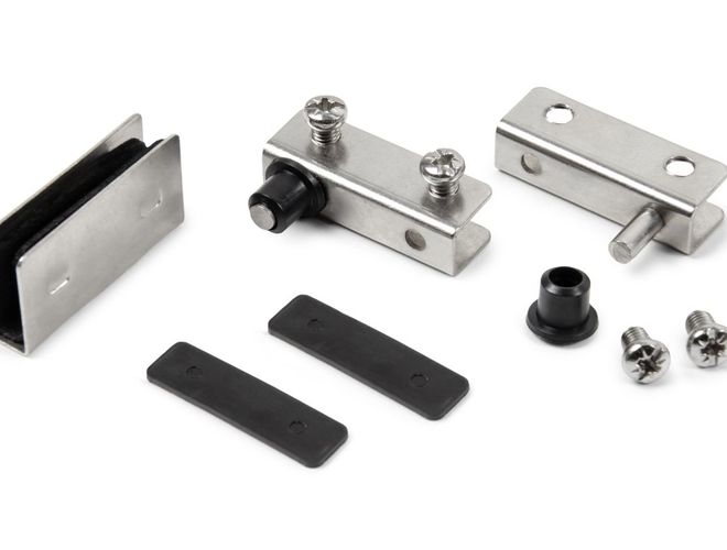 Петли для стекла HG001 толщиной до 6мм. Устанавливаются без сверления отверстия в стекле. Сверлятся не сквозные отверстия (d7х8мм) для втулок в верхней и нижней плоскостях шкафа. Затем в отверстия вставляют втулки, петли. Устанавливают стекло в петли, фиксируют его винтами, а к дверце крепят накладку. Рекомендуется использование совместно с магнитными держателями. Комплект предназначен для одного стеклянного фасада.