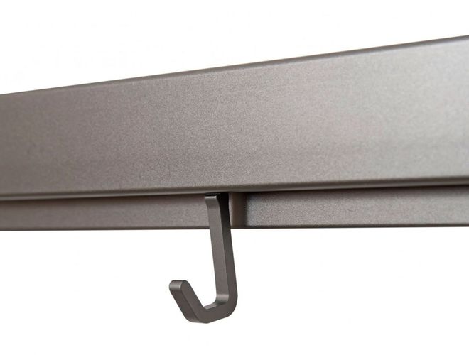 Серия современных навесных кухонных аксессуаров B-Planum выполнена из алюминия в наиболее надёжном покрытии методом анодирования. Технологией покрытия и разные способы производства полок и базы рейлинга, обусловлен возможный малозаметный разнотон в оттенке покрытия полок и базы рейлинга, не влияющий на внешний вид изделий и дизайн мебели в целом.