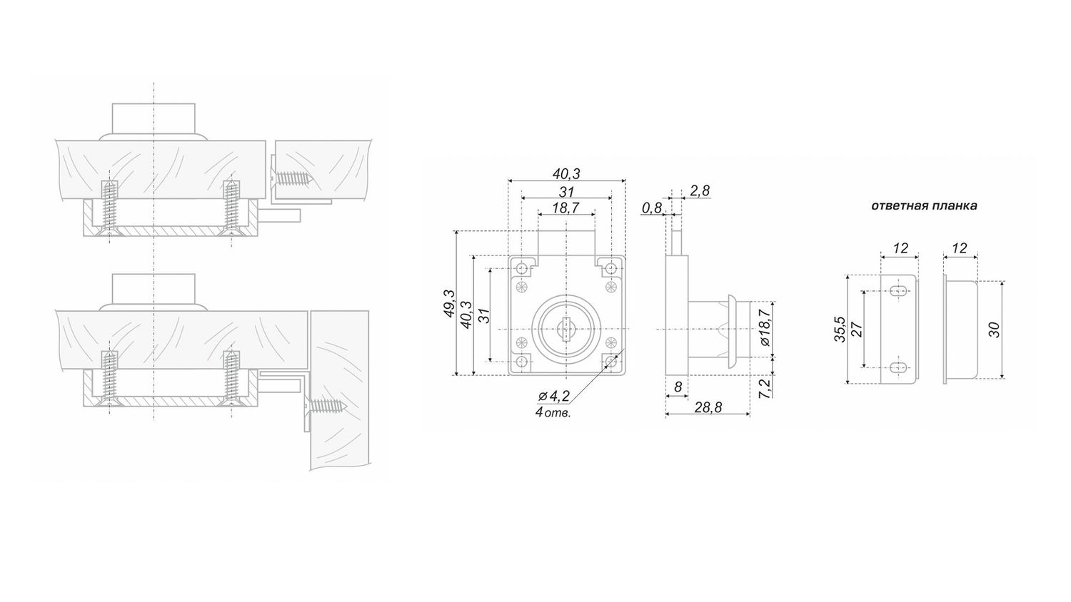 Врезной мебельный замок Z110 выполнен из нержавеющей стали. Модель подойдёт для распашных дверей и выдвижных ящиков из ЛДСП, МДФ и дерева толщиной 16-22 мм. Замок Z110 удобен в монтаже и эксплуатации. Плавный ход при повороте ключа обеспечит лёгкое открывание-закрывание выдвижного ящика или распашной дверцы. Повторяемость ключа — 120 единиц — стандарт надёжного хранения.