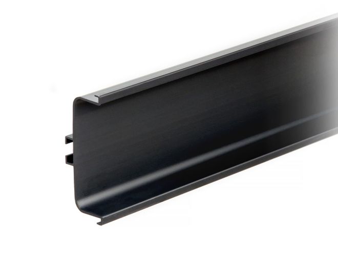 RP050 — C-образный профиль GOLA BALANCE для фасадов второго и следующих рядов нижней базы мебельного гарнитура. Модель устанавливается между ящиками и позволяет захватывать как нижний, так и верхний фасады. Полезная длина RP050 составляет 4100 мм.