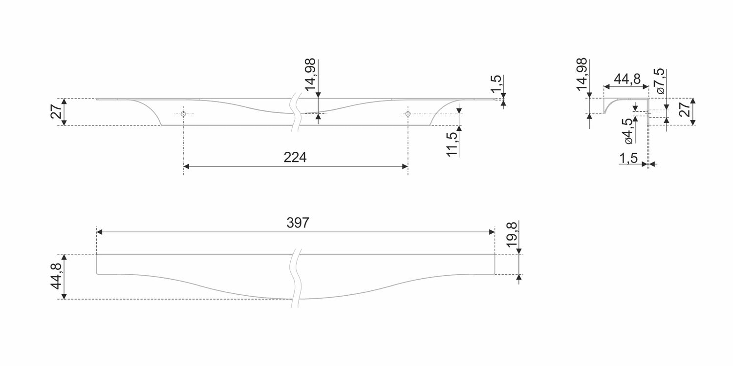 Модель крепится на фасады толщиной 16-18 мм методом наложения и фиксируется при помощи саморезов. Саморезы не входят в комплект и приобретаются отдельно. Размер саморезов необходимо подобрать самостоятельно, исходя из толщины фасада, на который будет устанавливаться ручка.