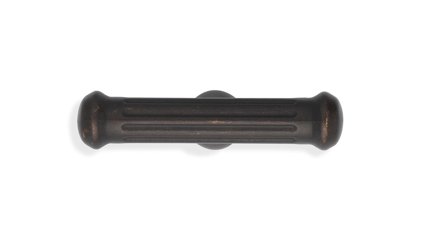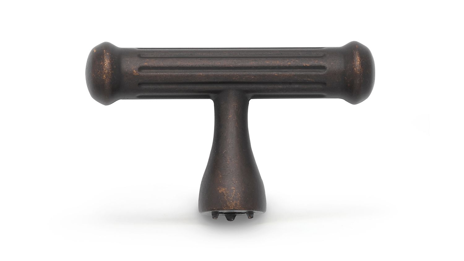 Кнопка RIGATA RC531 отличается эргономичной Т-образной формой с рельефной проработкой, напоминающей поверхность античных колонн. Ручка выполнена в стиле итальянской колониальной классики и является фурнитурной парой для скобы RS531. В паре со скобой или как самостоятельная фурнитурная единица кнопка будет хорошо смотреться на классических фасадах с фрезеровкой и патиной, а в тёмном цвете АС (старинная медь) — на фасадах мебели стилевого направления лофт.