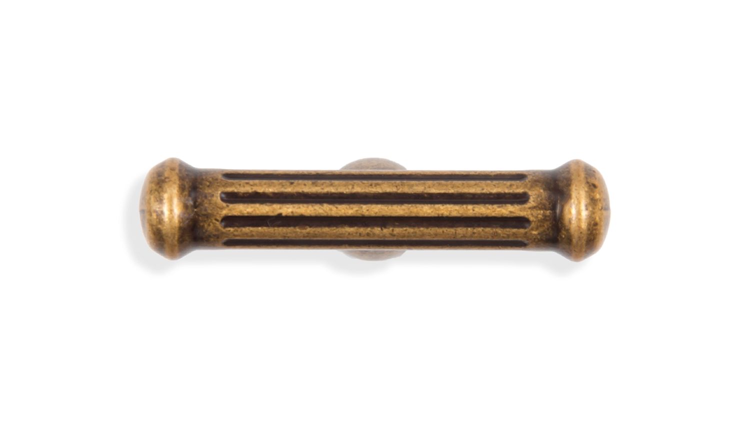 Кнопка RIGATA RC531 отличается эргономичной Т-образной формой с рельефной проработкой, напоминающей поверхность античных колонн. Ручка выполнена в стиле итальянской колониальной классики и является фурнитурной парой для скобы RS531. В паре со скобой или как самостоятельная фурнитурная единица кнопка будет хорошо смотреться на классических фасадах с фрезеровкой и патиной, а в тёмном цвете АС (старинная медь) — на фасадах мебели стилевого направления лофт.