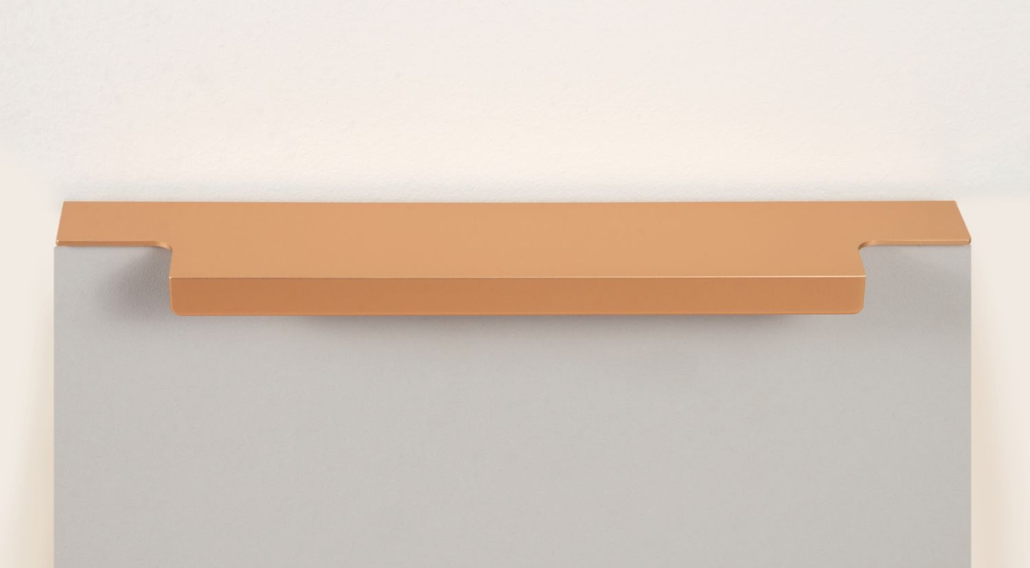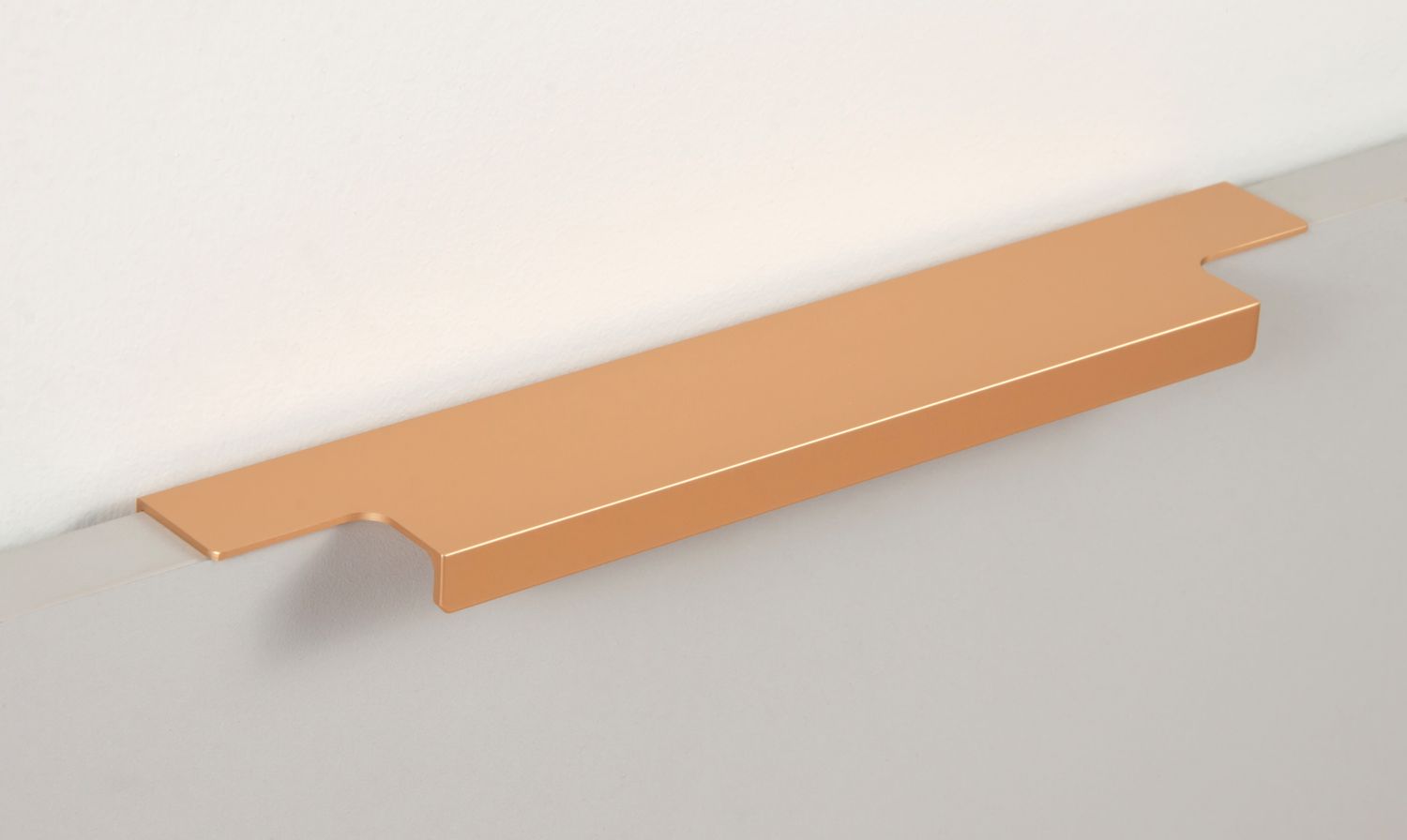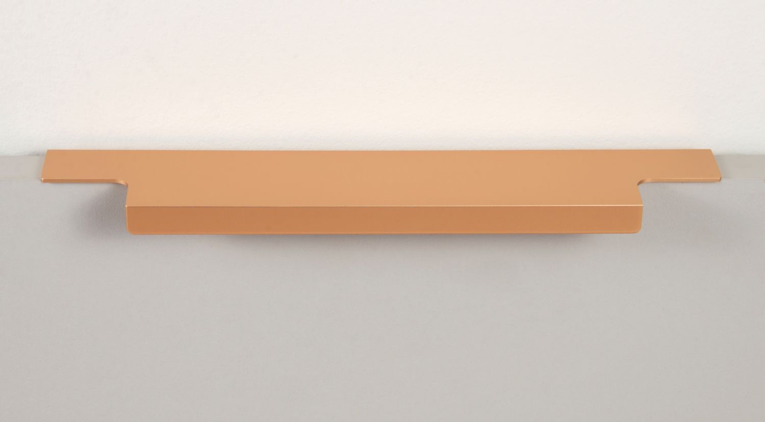 Ручка имеет богатую палитру цветовых решений и разнообразие длин. Данная модель допускает размещение двумя способами — «в размер» фасада и по центру широких фасадов (как большой «язычок»).