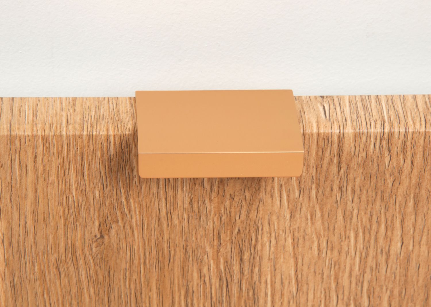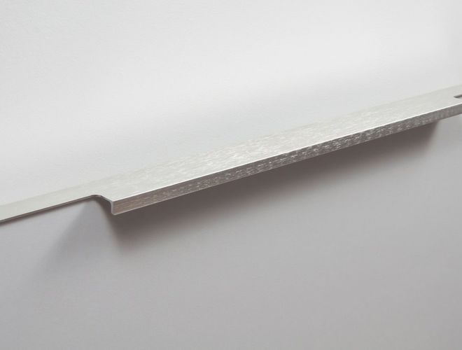Ручка имеет богатую палитру цветовых решений и разнообразие длин. Данная модель допускает размещение двумя способами — «в размер» фасада и по центру широких фасадов (как большой «язычок»).