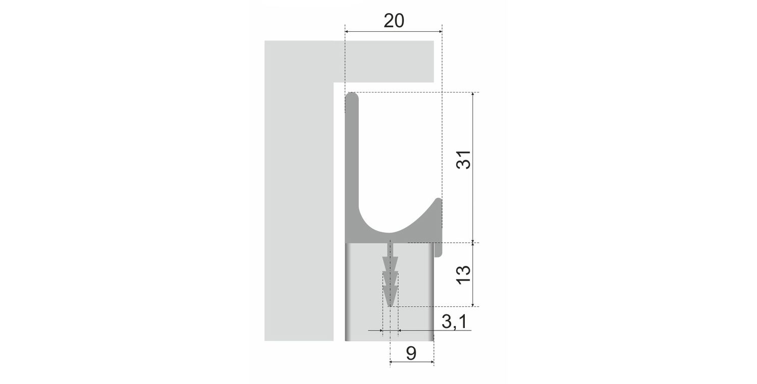 L-LINE RP003 — алюминиевая профильная ручка L-образной формы, которая врезается в заранее подготовленный паз в торце фасада толщиной до 18 мм. Ручки реализуются в размере 3000 мм и подгоняются под ширину фасада.