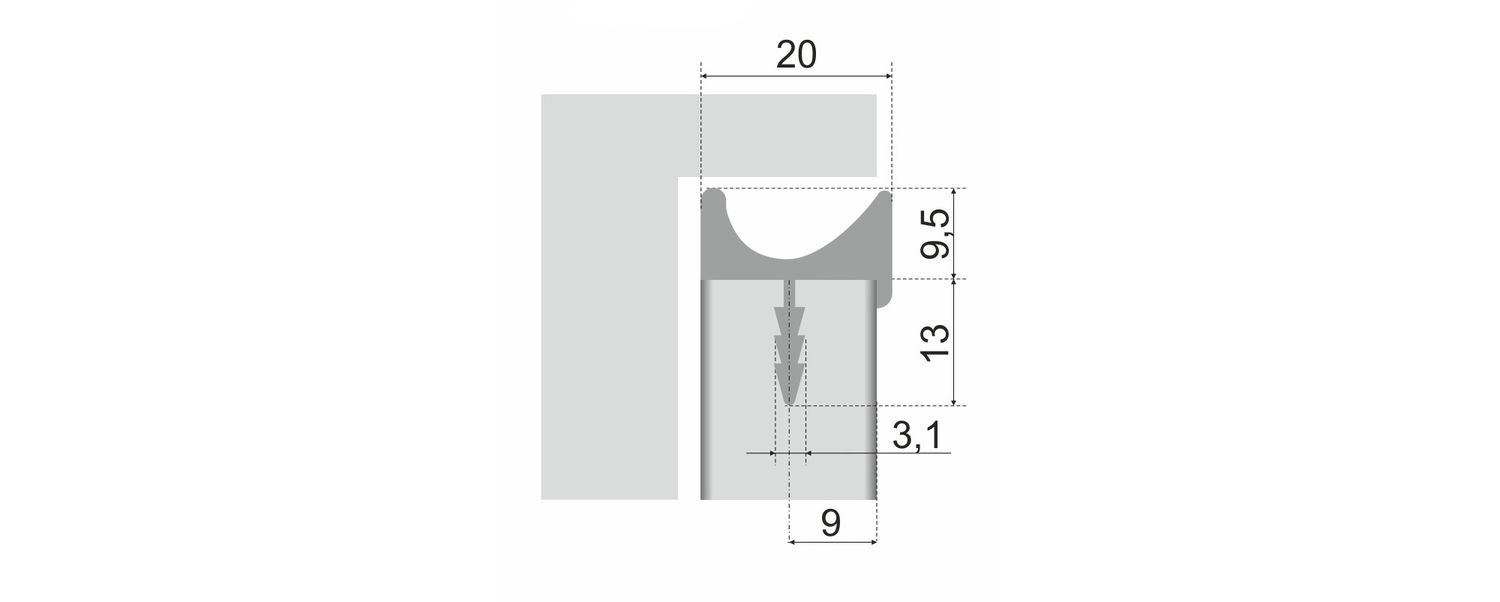 U-LINE RP004 — алюминиевая профильная ручка U-образной формы, которая врезается в заранее подготовленный паз в торце фасада толщиной до 18 мм. Ручки реализуются в размере 3000 мм и подгоняются под ширину фасада.