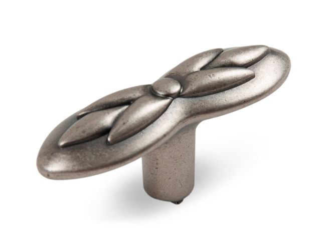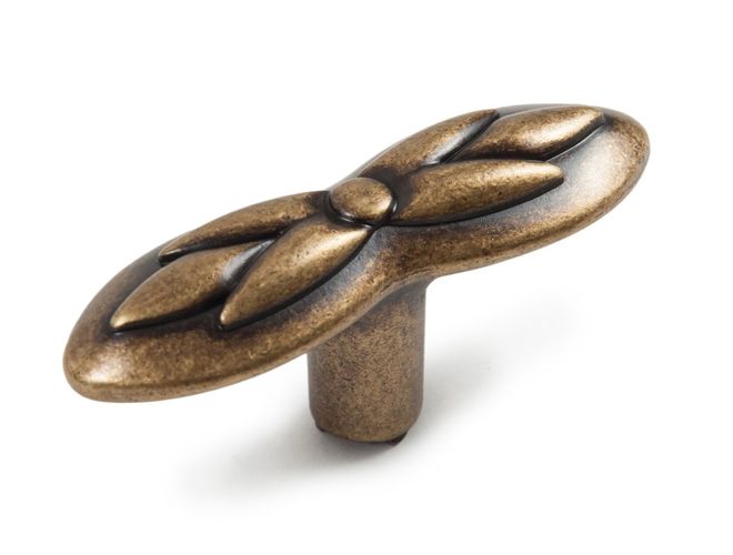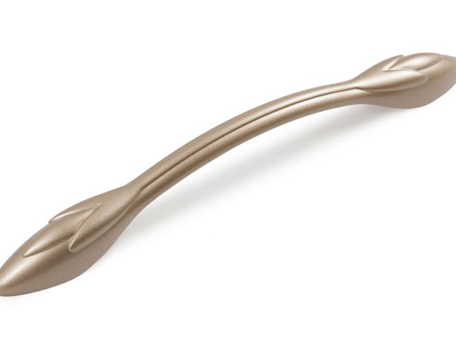 Ручка с растительным рисунком будет хороша на натуральных древесных фасадах или фасадах в покрытии с фактурой дерева, на мебели с фрезеровкой и даже патиной.