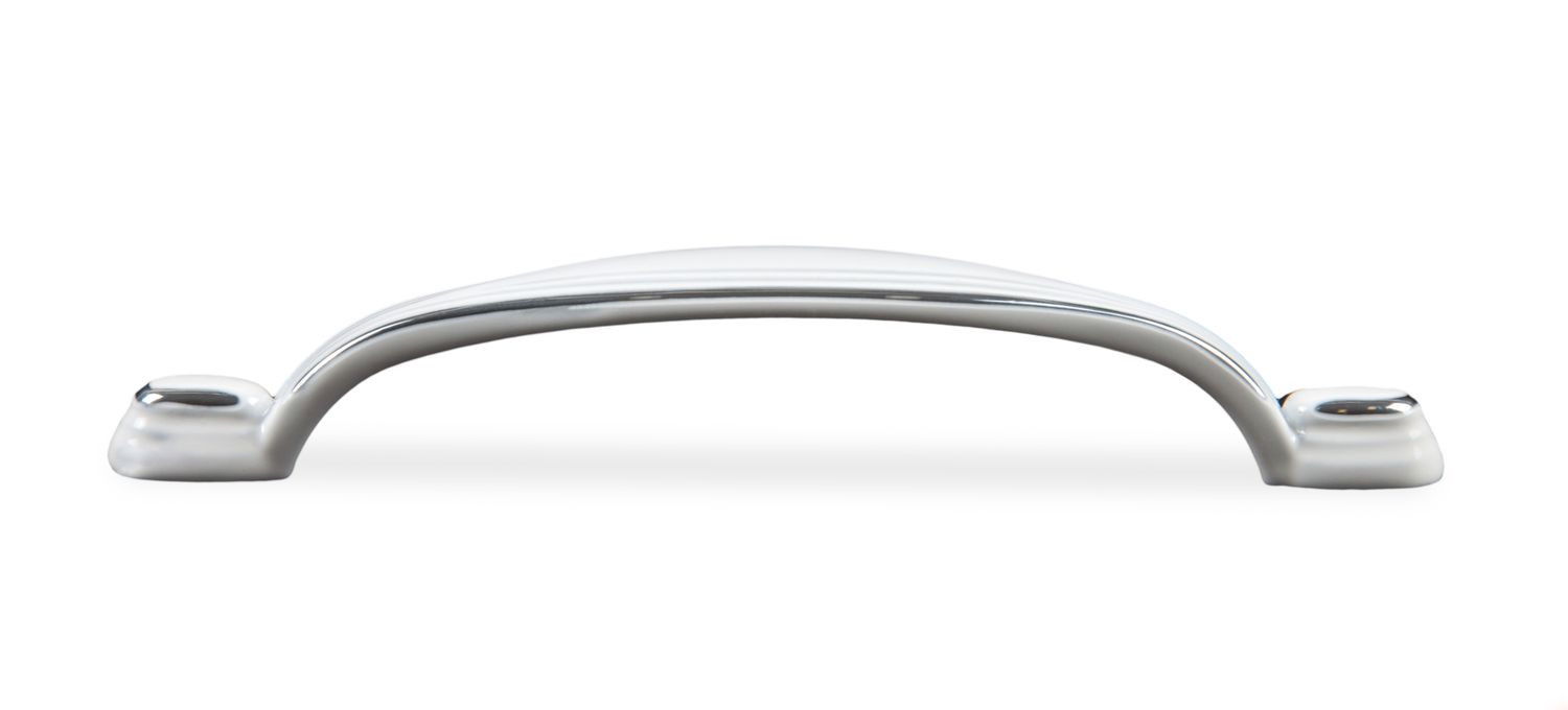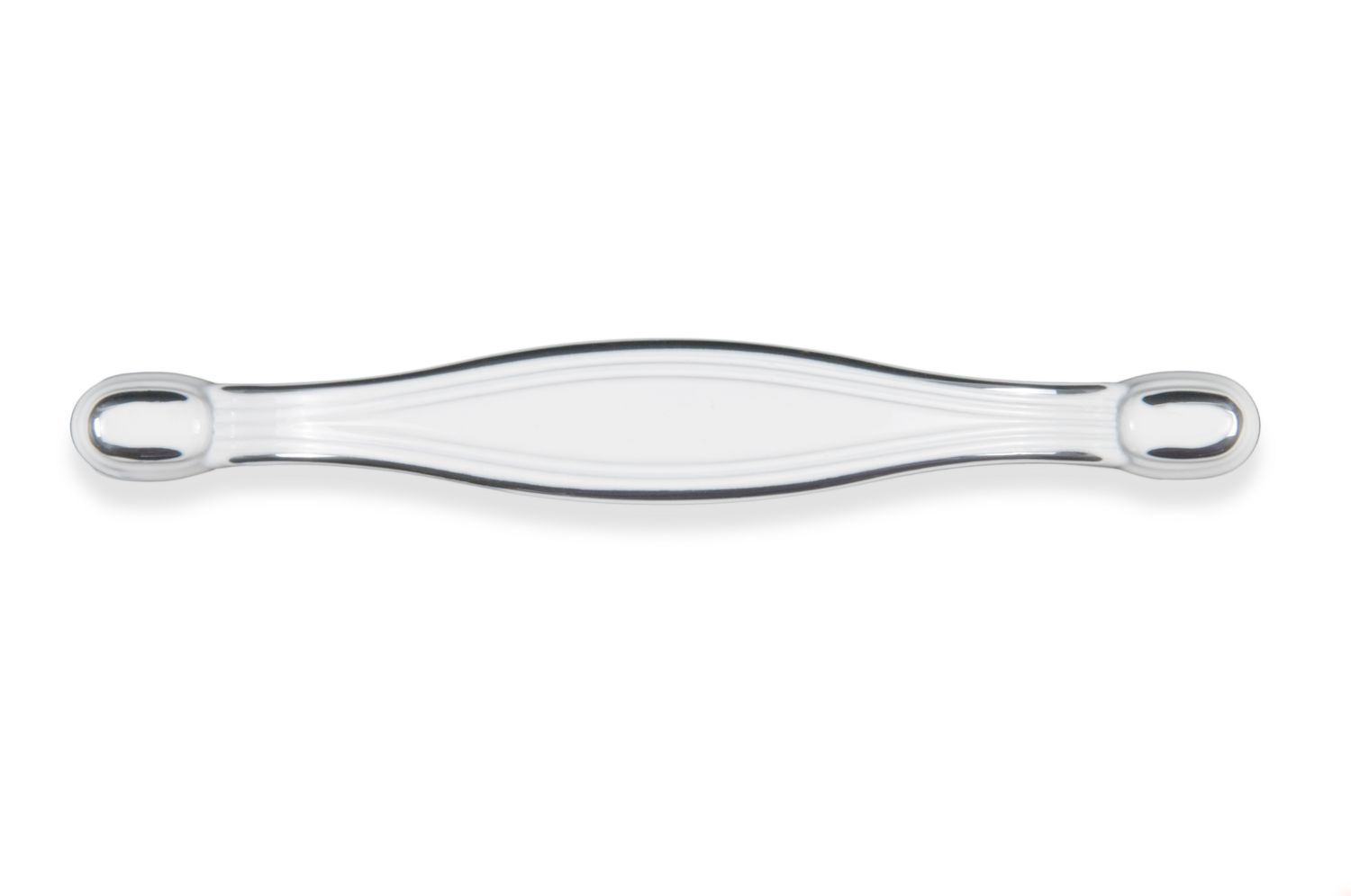 Плавная форма ручки RS471 комфортна и удобна. Нежная, как цветок крокуса, декоративная белая ручка с серебряной окантовкой, прекрасно выглядит на светлых и серых фасадах мебели в стилях прованс или классика.