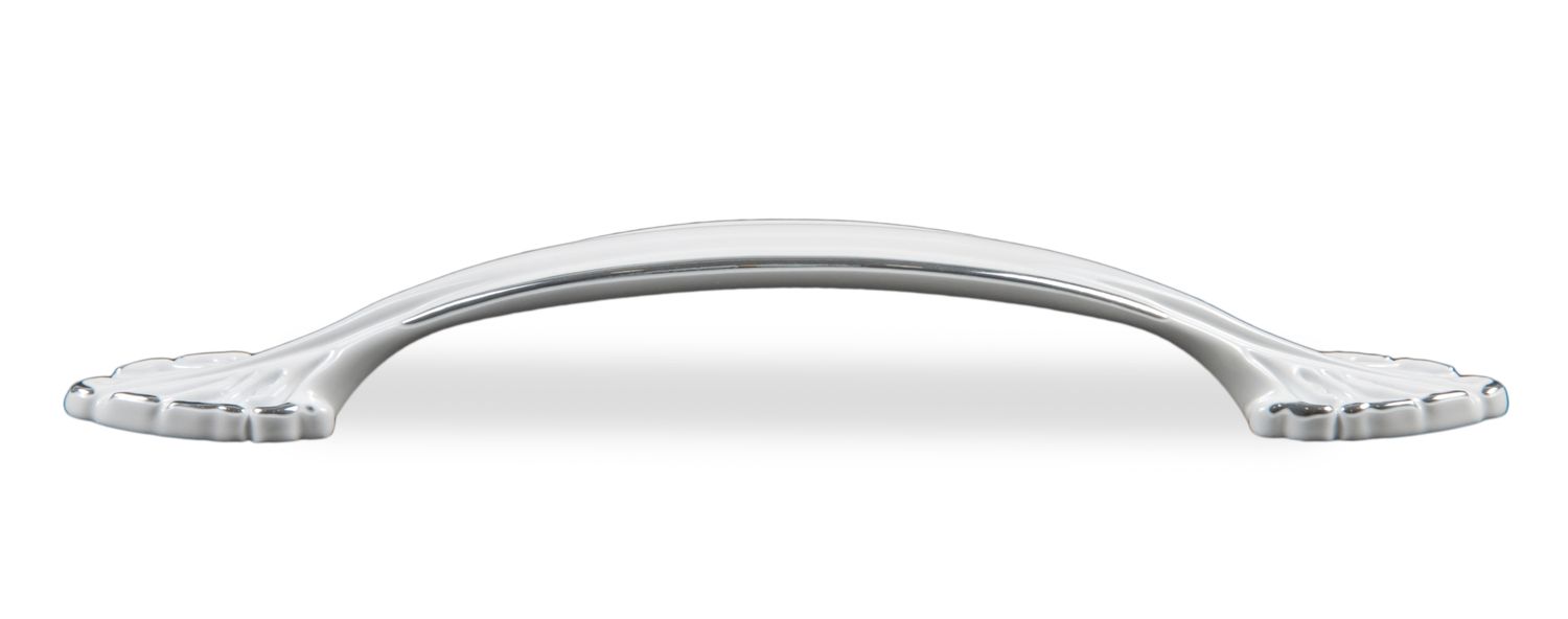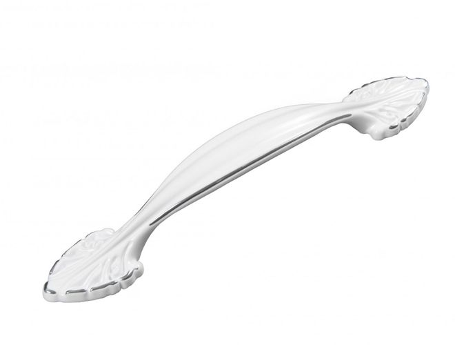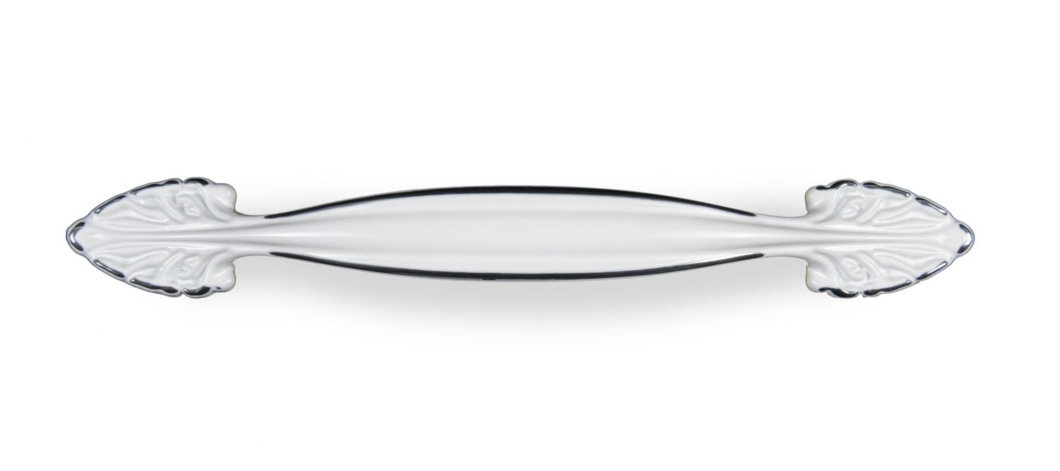 Нежная, словно хлопок, очень декоративная ручка RS472 станет прекрасным дополнением к мебели в стилях классика, неоклассика и прованс. Аккуратный дизайн ручки в белой эмали, дополненной объёмным серебряным кантом по контуру, станет деликатным дополнением к фасадам светлых оттенков древесной структуры, глянцевым фасадам или фрезерованным с патиной.