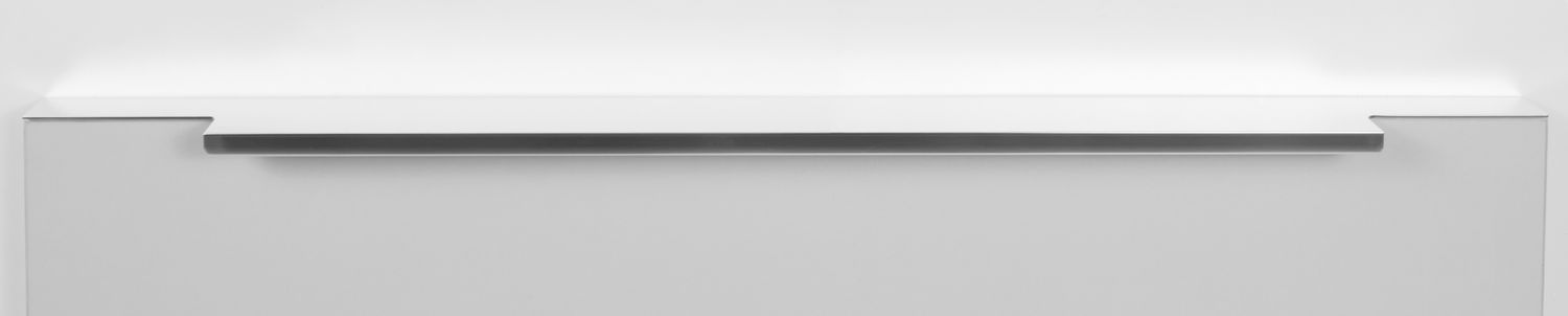 Ручка имеет богатую палитру цветовых решений и разнообразие длин. Данная модель допускает размещение двумя способами — «в размер» фасада и по центру широких фасадов (как большой «язычок»).