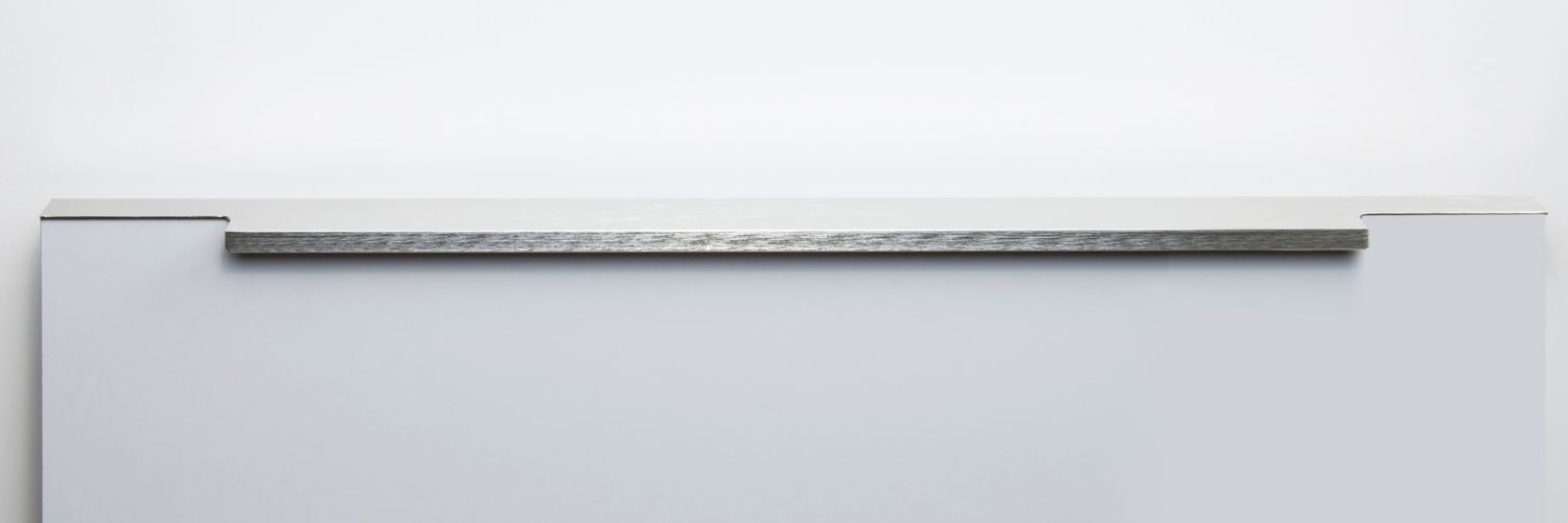 Ручка имеет богатую палитру цветовых решений и разнообразие длин. Данная модель допускает размещение двумя способами — «в размер» фасада и по центру широких фасадов (как большой «язычок»).