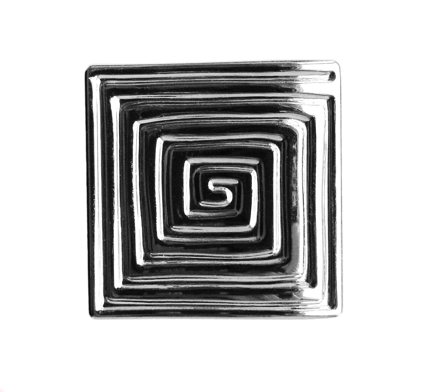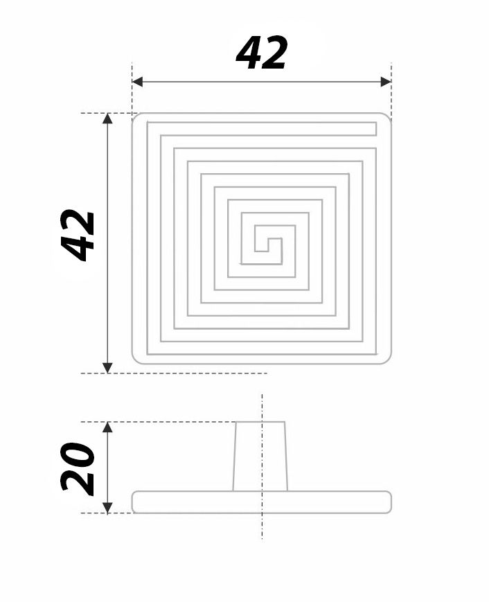 RC090CP.4 - современная геометричная кнопка с этническим настроением. Холодная строгость ее линий прорезана спиралевидным греческим узором, благодаря чему ручка выглядит динамично и живо в любом интерьере. Форма кнопки на первый взгляд очень простая, но на самом деле верхняя площадка имеет легкий изгиб для того, чтобы пальцы могли удобнее обхватить квадратную ручку.