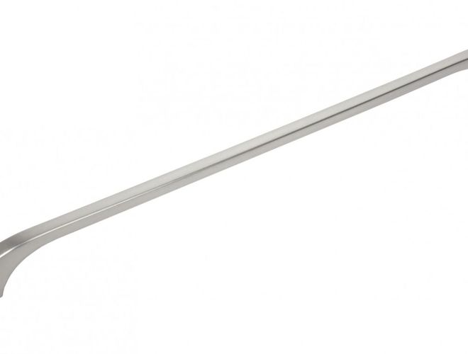 Ручка без острых углов, замысловатых изгибов и украшений. Ничего лишнего – строгая, форма и холодный цвет «Матовый атласный никель», визуально расширяющий границы и привносящий в интерьер немного морозной свежести. Модель, благодаря выверенной геометрии, настолько самодостаточна, что способна «работать» в тени и стать финальным штрихом мебели в стилях Минимализм, Хай-тек и Неоклассика.