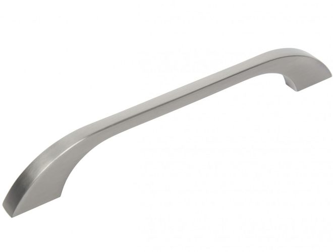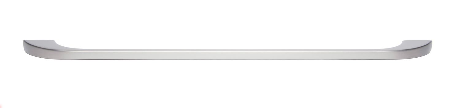 Ручка без острых углов, замысловатых изгибов и украшений. Ничего лишнего – строгая, форма и холодный цвет «Матовый атласный никель», визуально расширяющий границы и привносящий в интерьер немного морозной свежести. Модель, благодаря выверенной геометрии, настолько самодостаточна, что способна «работать» в тени и стать финальным штрихом мебели в стилях Минимализм, Хай-тек и Неоклассика.