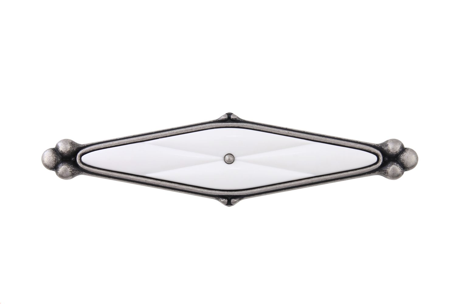 Модель DIVA RS118 –  утонченная ручка, созданная по всем канонам стиля Romantica. Изящный ромб с округлыми контурами, нежная вставка молочного оттенка и искусное покрытие, имитирующее состаренный металл - всё это навевает мысли об очаровании антикварной мебели.