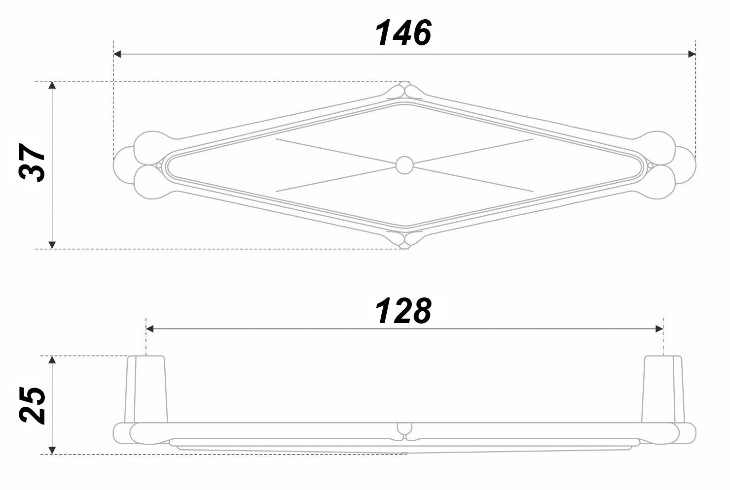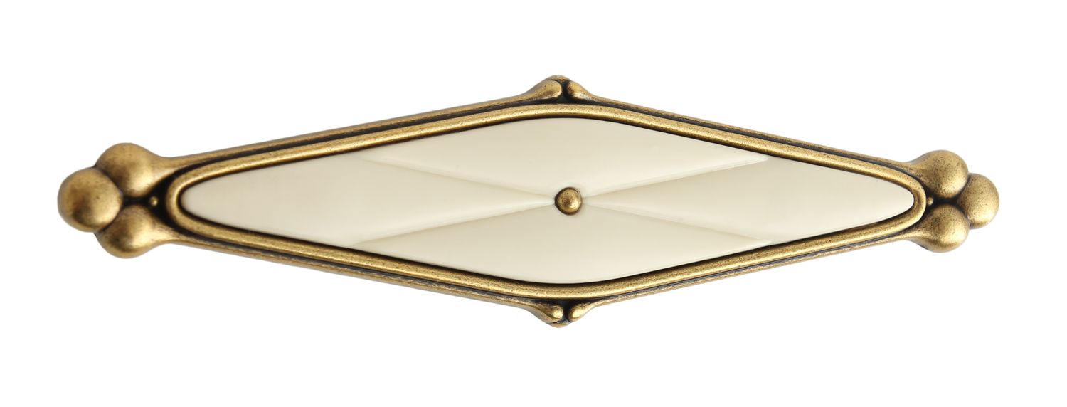 Модель DIVA RS118 –  утонченная ручка, созданная по всем канонам стиля Romantica. Изящный ромб с округлыми контурами, нежная вставка молочного оттенка и искусное покрытие, имитирующее состаренный металл - всё это навевает мысли об очаровании антикварной мебели.
