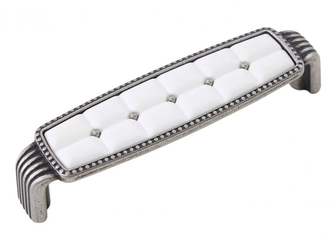 BELLE RS122 – ручка для романтичных натур. В ней в равной степени присутствуют нотки кокетства и нежности, благородства и изящества. Гладкая белая вставка, обрамленная “Матовой старинной латунью ” или “Черненым старинным цинком” – к этой ручке хочется прикоснуться, примерить ее на гарнитур и насладиться эстетикой винтажной и романтичной мебели. Форма ручки напоминает о роскоши будуаров – это неувядающий тренд в дизайне интерьеров, любимый и в нашей стране.