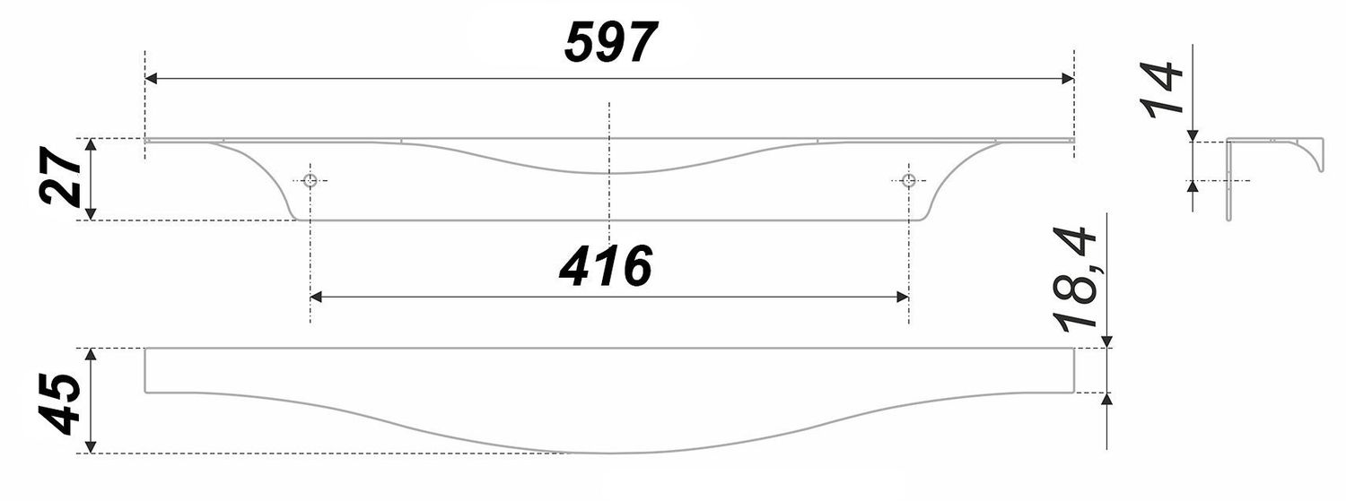 Ширина фасадов 400, 450, 500, 600, 800 – самые распространенные в массовом секторе мебели. Именно с такими параметрами предложены торцевые ручки M «в размер» фасада.