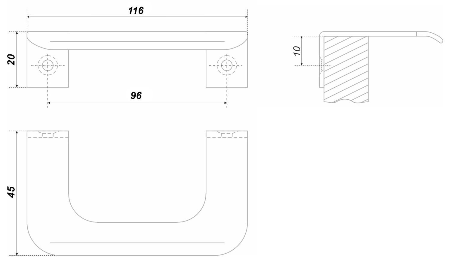 Модель идеальна для фасадов мебели популярной ширины. Ручка с межцентровым расстоянием 96 мм подходит для фасадов шириной 450 – 550 мм. Ручка с межцентровым расстоянием 128 мм оптимальная для фасадов от 500 до 1000 мм.