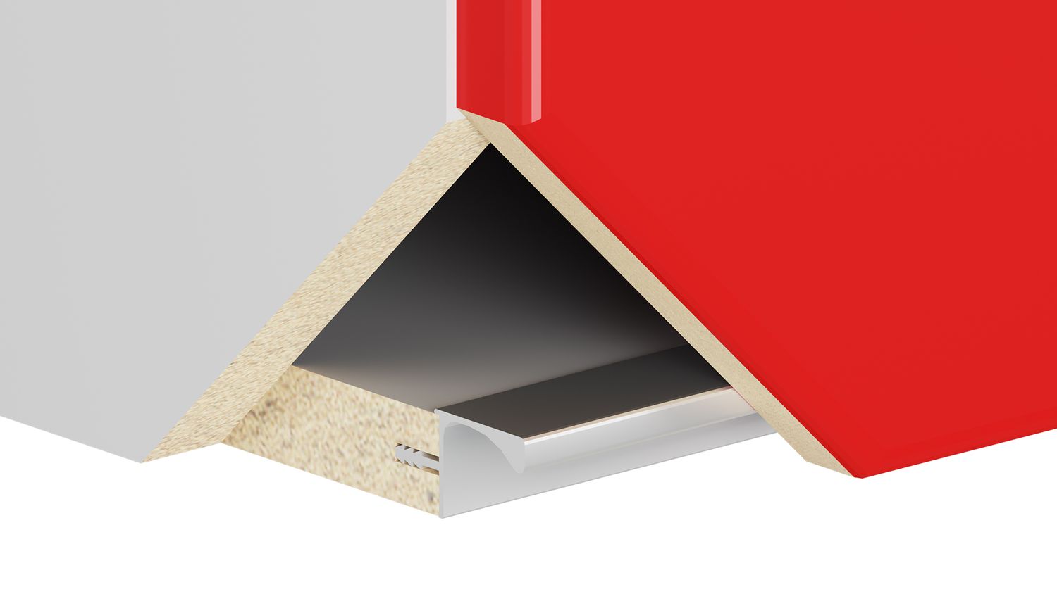 RP052 — профиль GOLA BALANCE для верхних баз мебельного гарнитура. Для установки ручки-профиля необходимо профрезеровать торец дна навесных модулей. Установленная ручка создаёт выемку для удобного захвата и открывания фасада рукой.