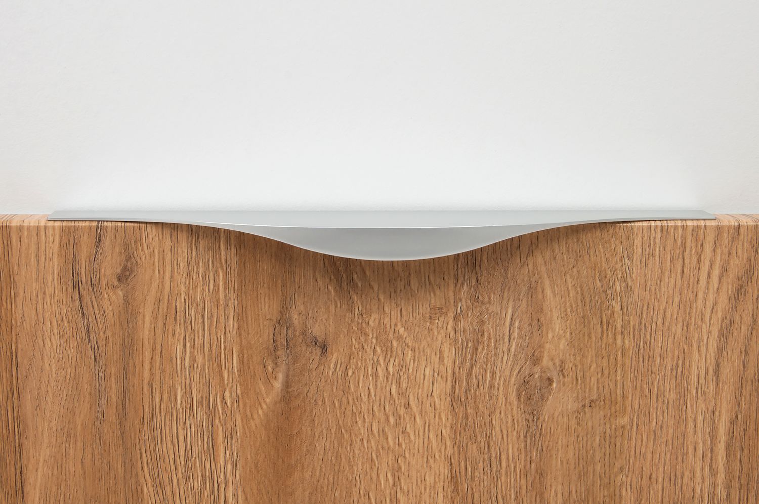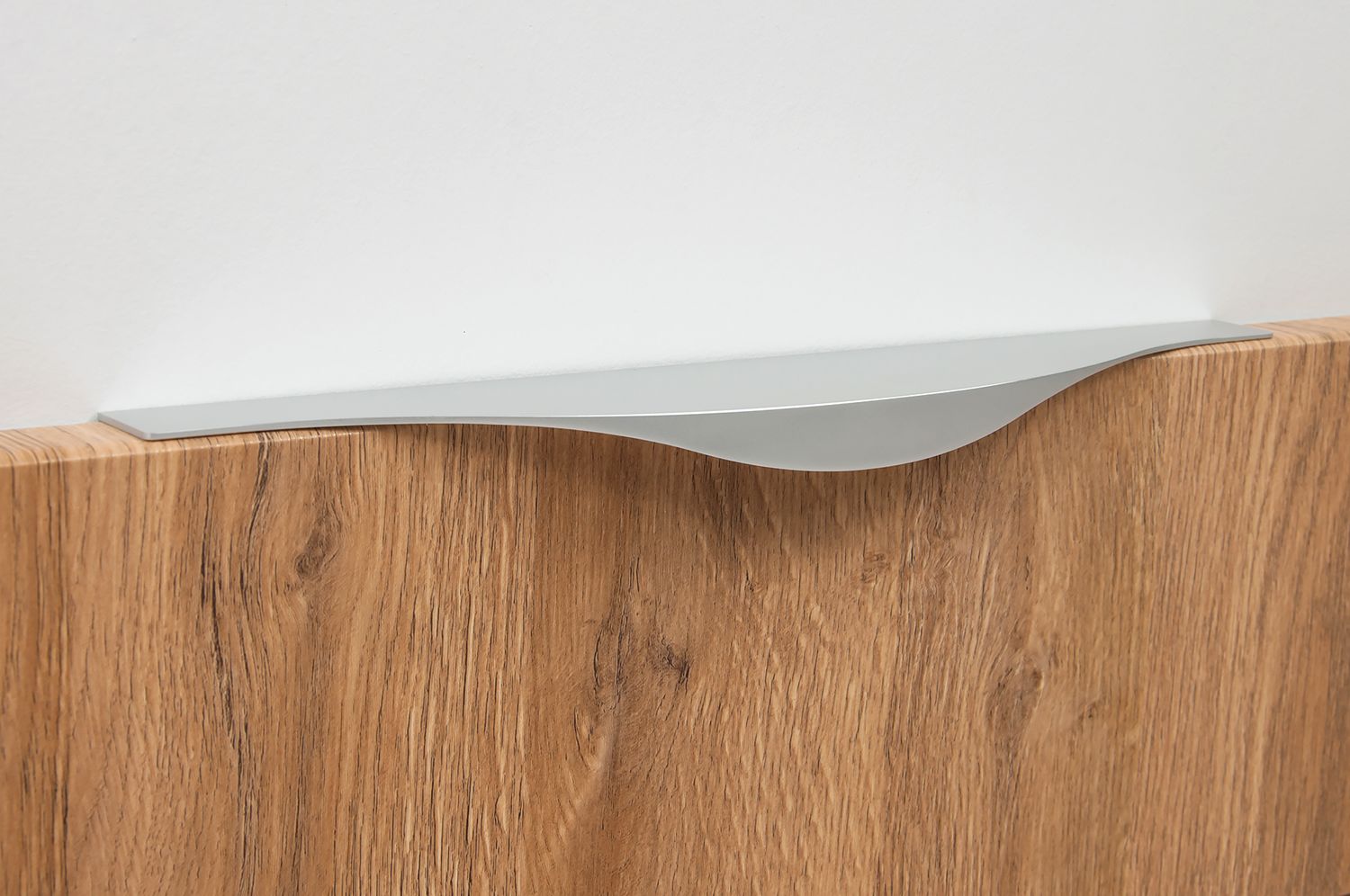 Ручку можно установить двумя способами — «в размер» фасада или по центру как большой «язычок» — оба варианта допустимы с точки зрения дизайна и эргономики.