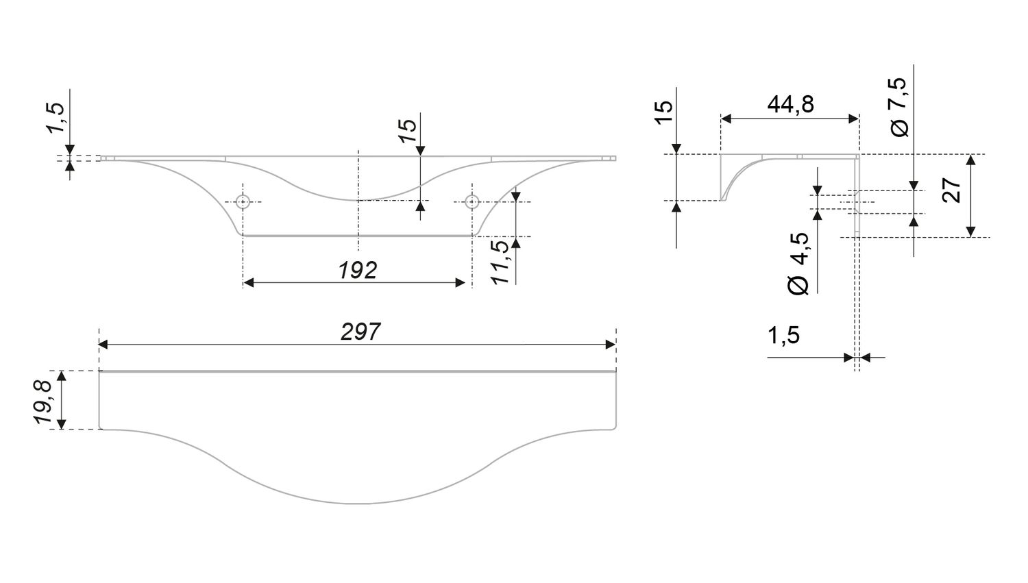 Модель крепится на фасады толщиной 16-18 мм методом наложения и фиксируется при помощи саморезов. Саморезы не входят в комплект и приобретаются отдельно. Размер саморезов необходимо подобрать самостоятельно, исходя из толщины фасада, на который будет устанавливаться ручка.