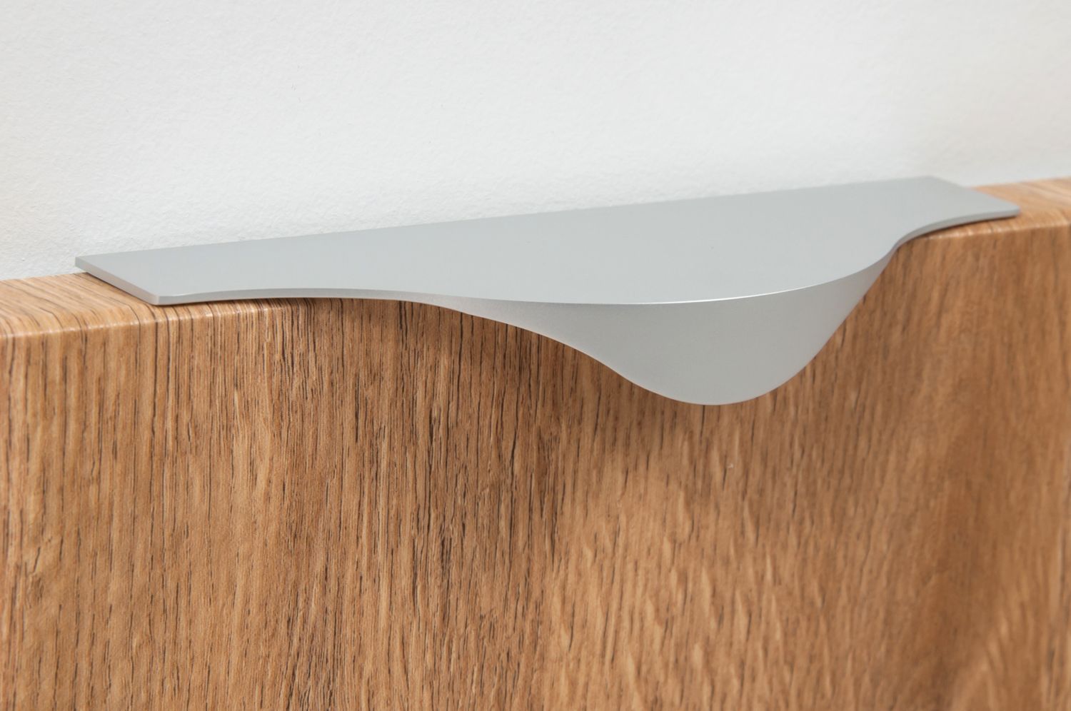 Ручку можно установить двумя способами — «в размер» фасада или по центру как большой «язычок» — оба варианта допустимы с точки зрения дизайна и эргономики.