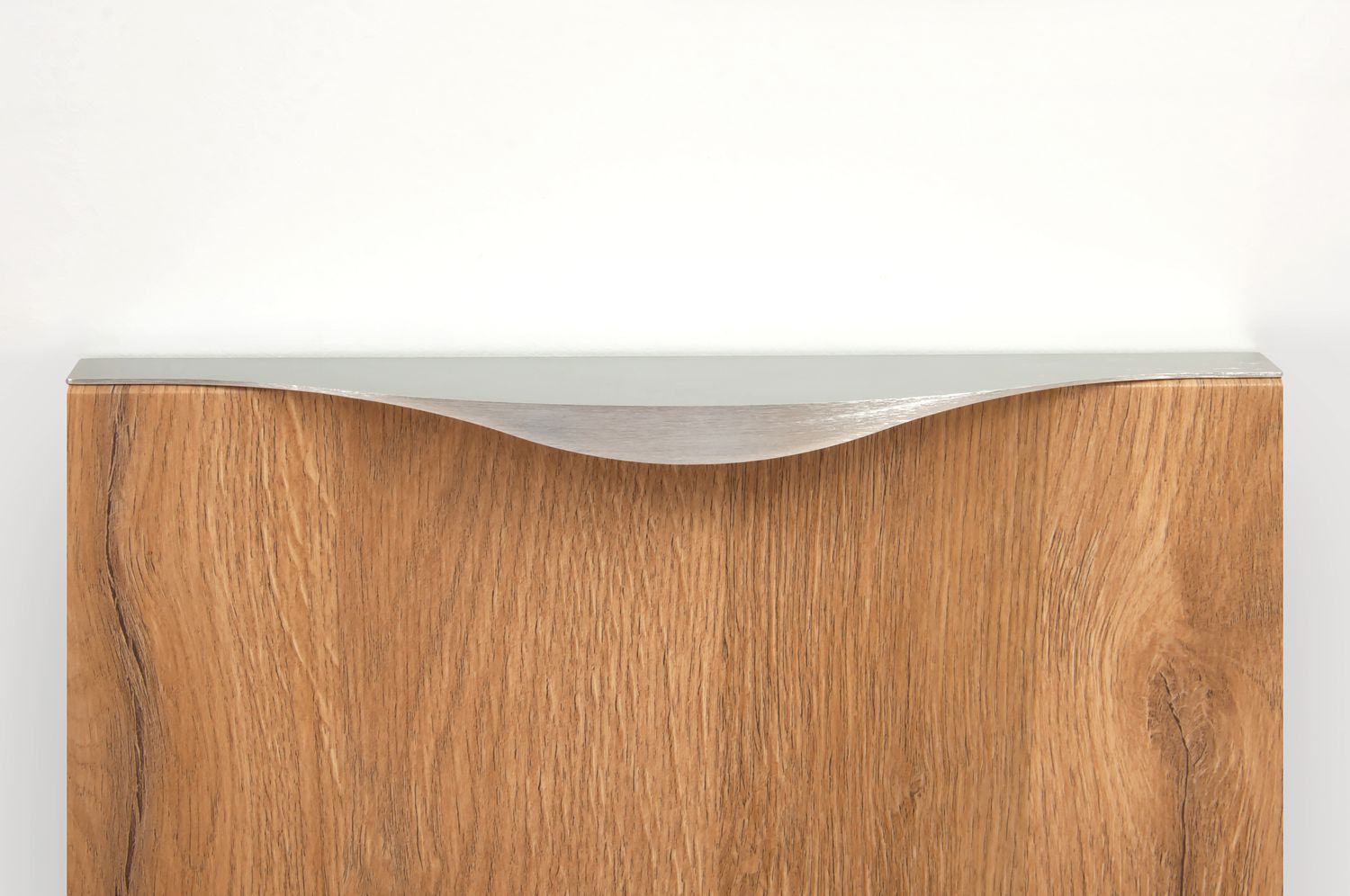 Ручку можно установить двумя способами — «в размер» фасада или по центру как большой «язычок» — оба варианта допустимы с точки зрения дизайна и эргономики.