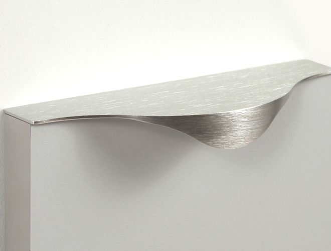 Ручку можно установить двумя способами — «в размер» фасада или по центру как большой «язычок» — оба варианта допустимы с точки зрения дизайна и эргономики.