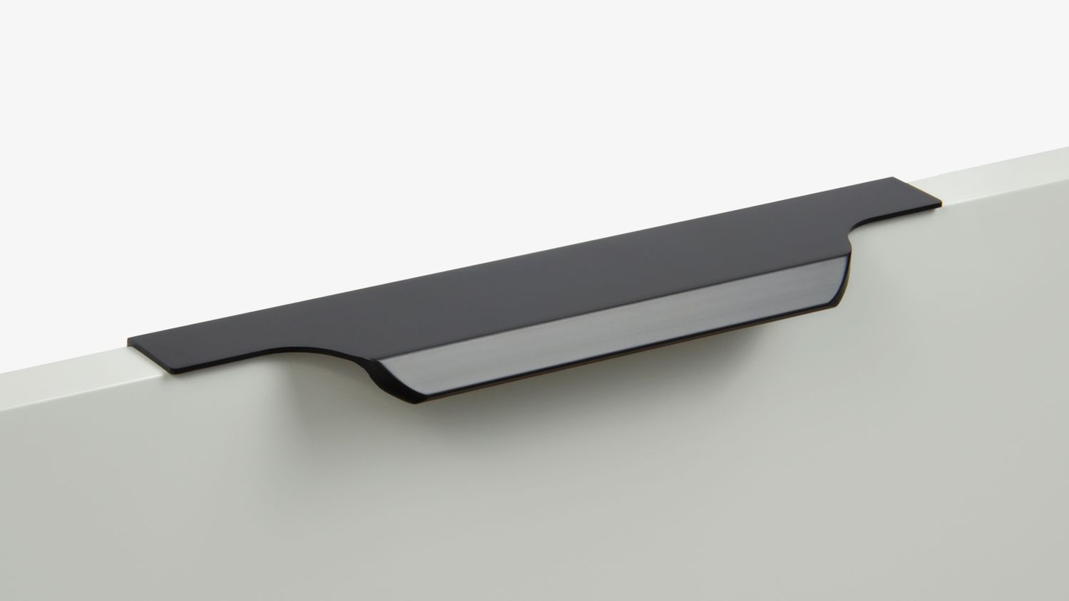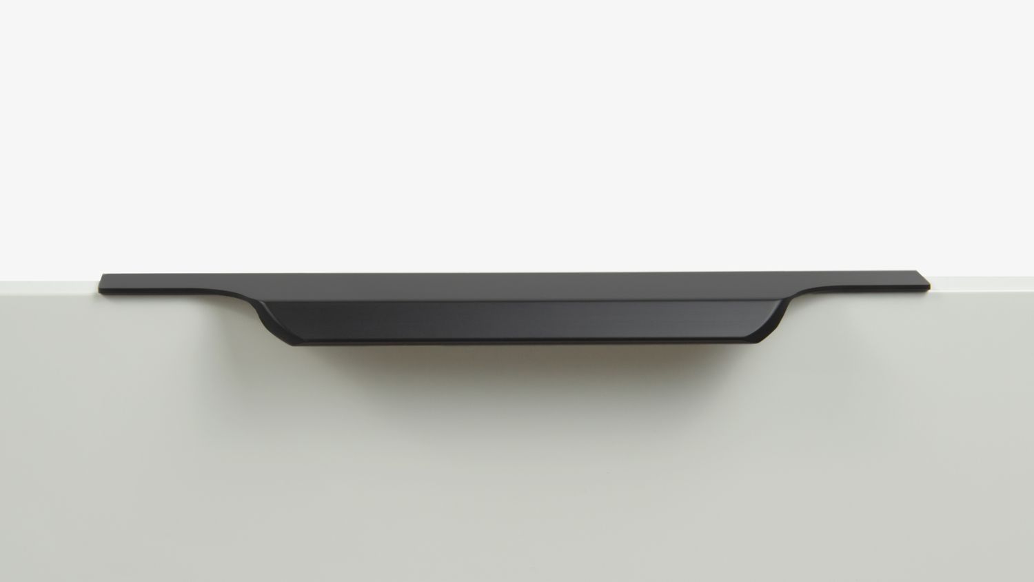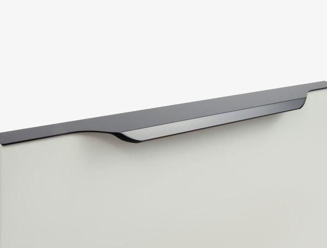 TERA подойдёт как для узких бутылочниц и корзин-карго, так и ящиков формата макси. Торцевую ручку, независимо от размера, можно устанавливать не только чётко в размер фасада, но и как широкий язычок. Ручки в виде язычков прекрасно выполняют свою функциональную и эстетическую роль на более широких фасадах.