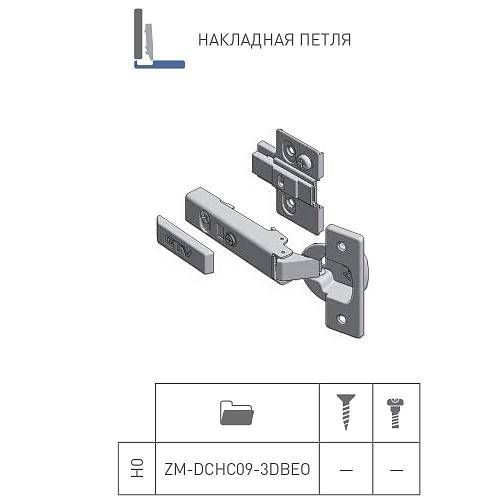 ПЕТЛЯ САМОЗАКРЫВАЮЩАЯСЯ SOLID БЕЗ ЕВРОШУРУПА РЕГУЛИРОВКА В 3 ПЛОСКОСТЯХ накладная - ZM-DCHC09-3DBEO