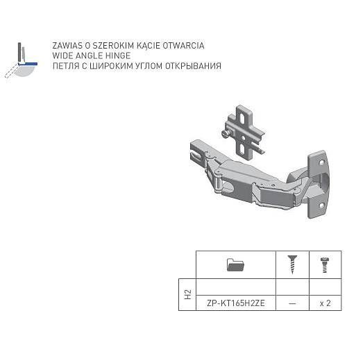 Петля накладная GTV 165 градусов с планкой H-2 с евро, 45мм - ZP-KT165H2ZE