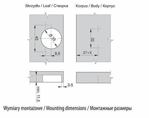 Регулировка положения дверцы по глубине, ширине и высоте.