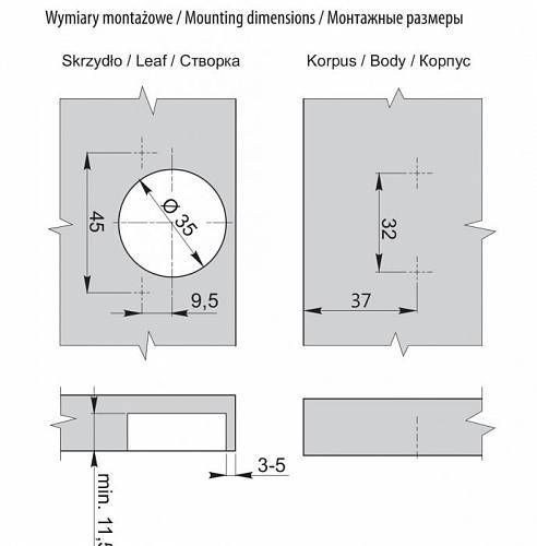 Регулировка положения дверцы по глубине, ширине и высоте.