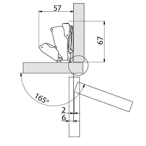 Петля GTV ZM-НСKT 155 градусов угловая самозакрывающаяся с планкой H-0 - ZM-HCKT155BE