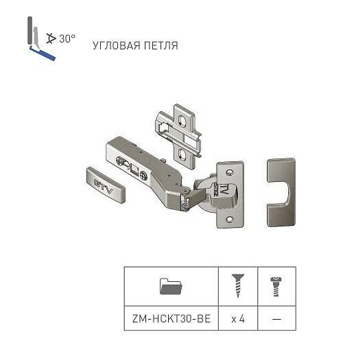 Петля GTV ZM-НСKT 30 градусов угловая самозакрывающаяся с планкой - механизм для открывания фасада под определенным углом, в соответствии с конфигурацией мебельной конструкции.