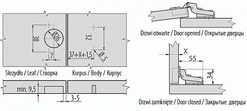 Тип открывания/закрывания: | без плавного закрывания |